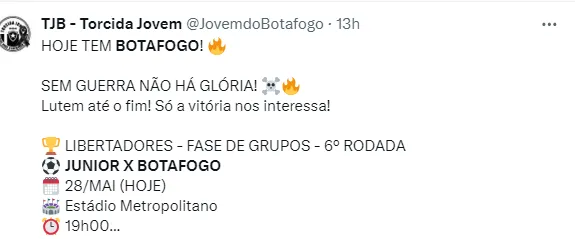Nesta terça-feira, 28 de maio, Júnior e Botafogo se enfrentam às 19h em confronto válido pela sexta rodada da fase de grupos da Libertadores da América. A partida será realizada no Metropolitano de Barranquilla, sendo um duelo direto pela liderança do Grupo D.