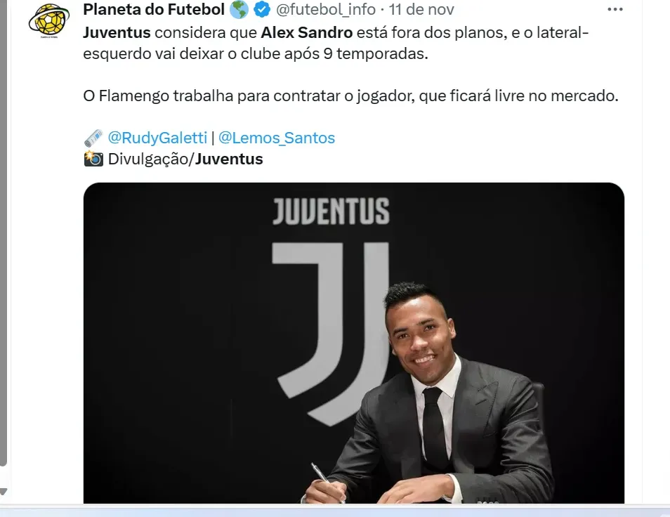 Integrante da Seleção Brasileira da última Copa do Mundo, o lateral-esquerdo de 32 anos está em fim de contrato na Juventus. Os italianos não vão renovar com o brasileiro. De acordo com a reportagem, a Velha Senhora aceita liberar Alex Sandro agora, ou seja, ele pode rescindir neste momento.