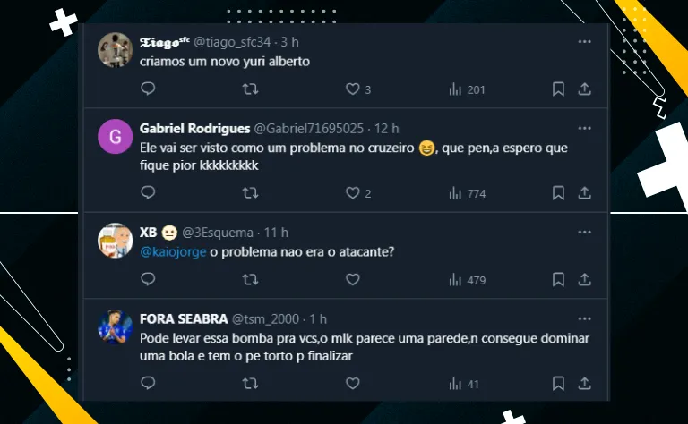 Por fim, o desempenho de Kaio Jorge vem causando a ira na torcida celeste, que não está poupando o jovem de 22 anos. O assunto também veio à tona na torcida do Santos e gerou “burburinho”.