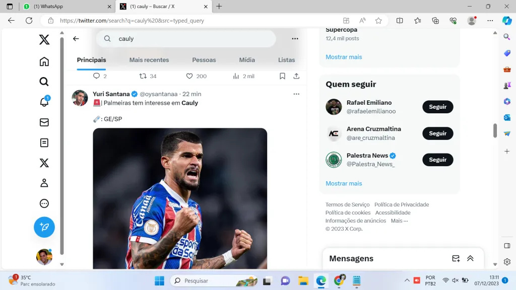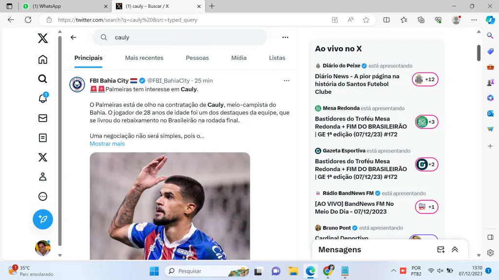 Só que mesmo fazendo uma campanha ruim na Série A, o Bahia está na mira de rivais no Brasil. O Globo Esporte informou que o Palmeiras, de Leila Pereira, tem interesse no meia Cauly, um dos destaques do Esquadrão.
