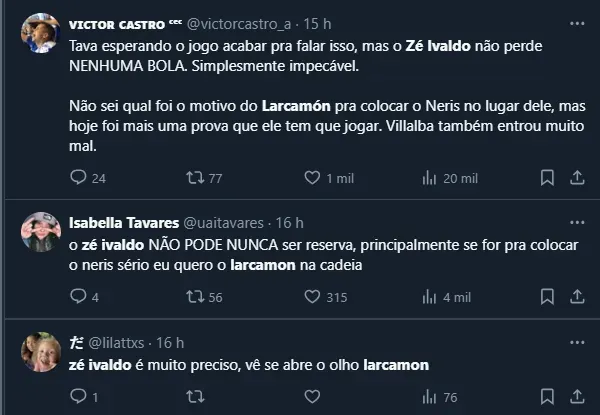 Isso porque, o técnico Nicolás Larcamón resolveu espelhar o esquema de Gabriel Milito e apostou na formação com três zagueiros, mas não colocou Zé Ivaldo entre os titulares. O tema causou enorme polêmica entre os cruzeirenses, até pelo defensor ter mudado o jogo com sua entrada: