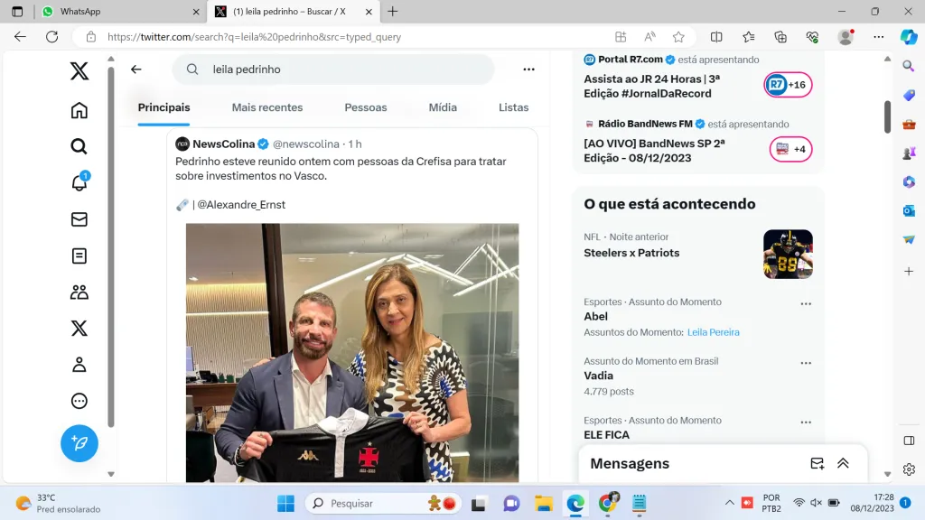 Segundo informações do jornalista Alexandre Ernst, Leila teria feito sua primeira indicação a Pedrinho: a contratação de Alexandre Mattos como diretor-executivo de futebol para 2024.