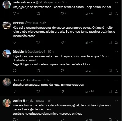 O comandante ainda ressaltou que a equipe começou bem a partida, mas o jogo teve muitos erros de ambos os lados e os erros do Vitória nas bolas aéreas, em que Payet apareceu e se destacou, acabaram definindo o jogo. “Acho que a gente fez um bom primeiro tempo, não foi um jogo muito vistoso, com as duas equipes errando muito”, ponderou.