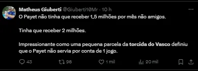 Ele ainda disse que mesmo com a atmosfera criado, sua equipe foi bem, mas não conseguiu o resultado desejado para melhorar sua situação no Brasileirão. “A gente sabe que o Vasco tem torcida apaixonada que comparece todos os jogos. O torcedor sempre comparece. Hoje o torcedor veio em bom número, incentivou. Foi atmosfera bacana. A gente sai com resultado negativo, mas foi jogo bem jogado”, concluiu Condé.