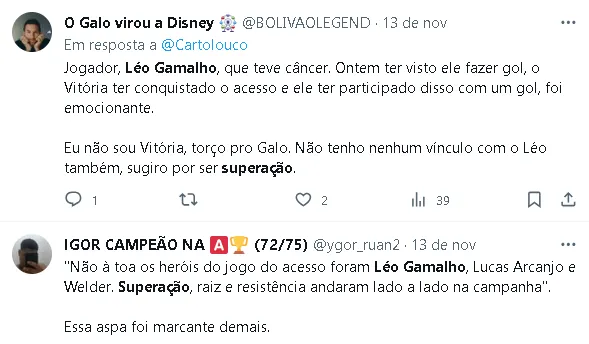 O jogador expressou gratidão pela superação, destacando a força que recebeu de Deus, companheiros, direção e torcida, que enviou mensagens de apoio.