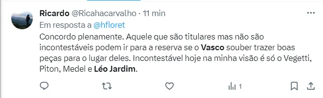 O goleiro ainda fez questão de exaltar a história do Vasco: “Tem sido muito bacana, considero uma grande responsabilidade representar a camisa número 1 do Vasco”.