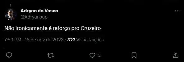 “Será que é reforço pra eles? Os dois são bastante criticados lá”, “Nikão machucado é reforço” e “Vital e Nikão são reforços kkkkkkkkkkkkkkk Apenas Lucas Silva é desfalque”, foram alguns dos comentários.