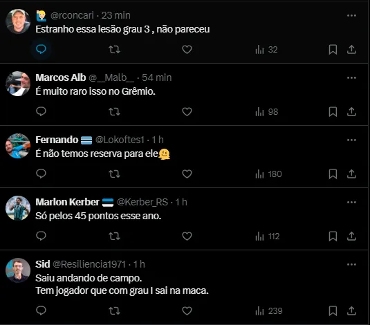 Reações da torcida sobre a lesão
