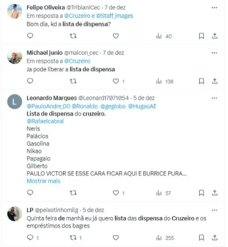 Se não bastasse os ‘mais conhecidos’, como Gilberto e Nikão, por exemplo, existem outras peças que devem respirar novos ares longe de Belo Horizonte, especialmente um quarteto, de acordo com o Globo Esporte.