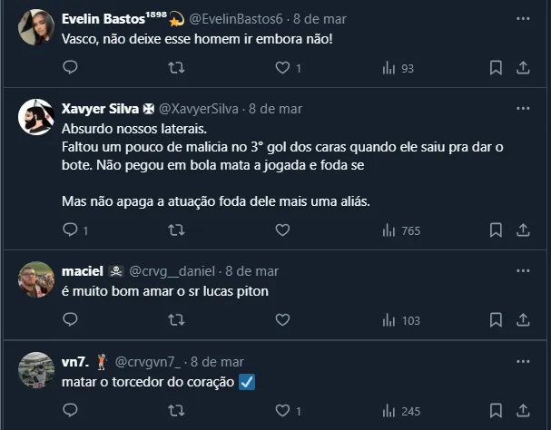 Piton recebe elogios no Vasco