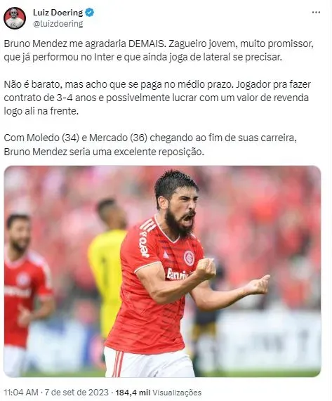 Acha que o Colorado deve tratar Bruno Méndez como prioridade para a zaga na próxima temporada?