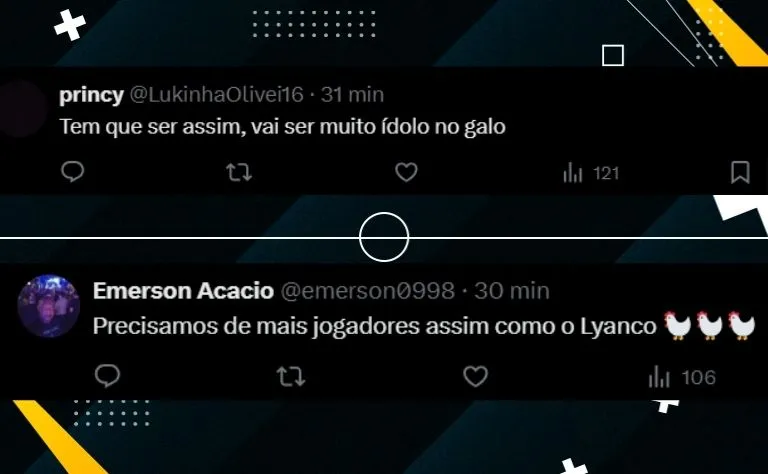 “Lyanco é o zagueiro que o Galo precisava! Ganhou a jogada na raça, com o jogo parado deu um chapéu no adversário e mandou um beijo para o banco adversário”, publicou outro internauta.