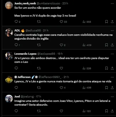 Em relação ao mercado, Lyanco tem desejo de voltar ao Brasil. Agora, resta aguardar para saber se os negócios serão selados na próxima janela de transferências do mercado da bola.