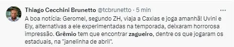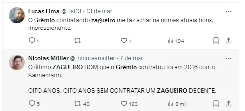 Gremistas falam sobre zaga na web