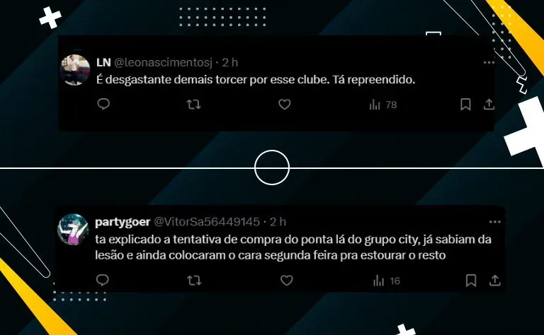 A falta de confiança na recuperação rápida também foi mencionada: “Esse rapaz tá a temporada inteira nessa de joga e se machuca. Até nisso o Pec era melhor,” afirmou um torcedor, comparando a situação com a saída iminente de Gabriel Pec.