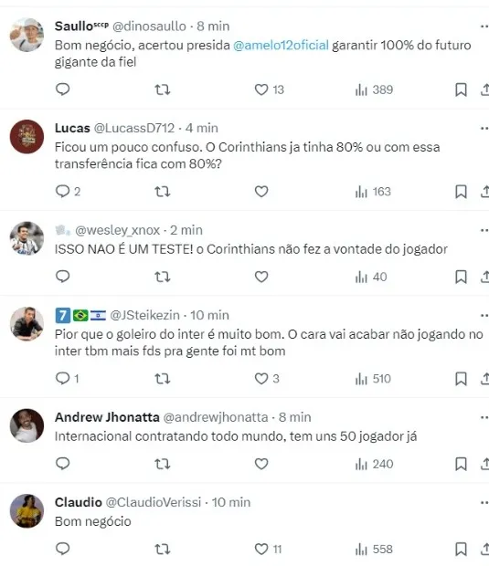 “Inter acertando últimos detalhes para anunciar o goleiro Ivan. Negociação em definitivo com o Corinthians. O goleiro também tinha proposta do América-MG, mas optou pelo Inter. Chega na segunda-feira a Porto Alegre”, escreveu o jornalista Bruno Flores, da GZH.