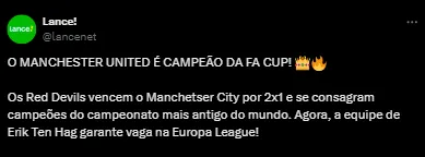 O Manchester United é o grande campeão da Copa da Inglaterra. A equipe, que vive uma campanha abaixo do esperado, garantiu o título diante de seu maior rival, o Manchester City, neste sábado (25).