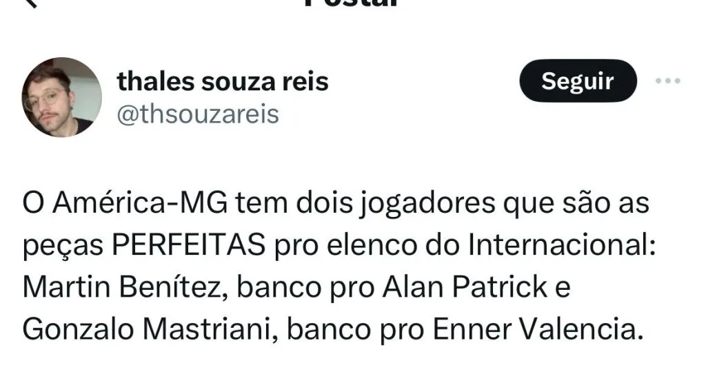 Já visando a temporada 2024 mesmo com uma eleição pela frente no próximo dia 9 de dezembro, o Internacional, que deve ter Coudet como treinador em 2024 quer um zagueiro, um volante, um meia armador, um atacante que atua pelo lado de campo e um centroavante. Para função de 9, Mastriani é o nome bem avaliado no Beira-Rio, mas a diretoria do América promete fazer jogo duro.