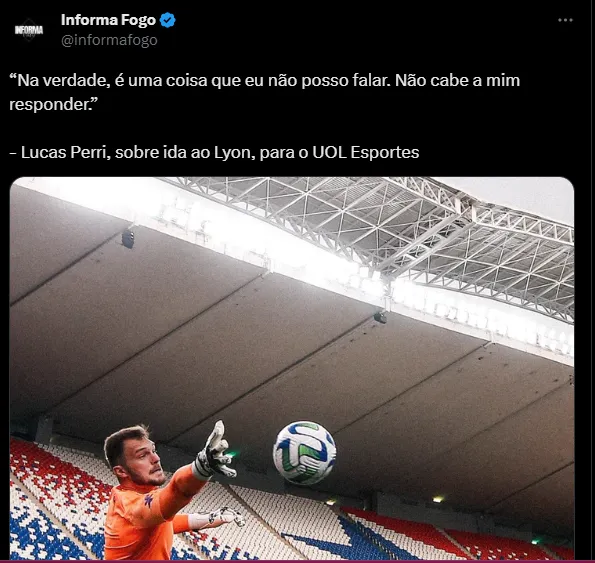 Um deles é o goleiro Lucas Perri, titular absoluto do Botafogo e convocado para a Seleção Brasileira. O arqueiro é cotado para jogar no Lyon (FRA) na próxima temporada, juntamente com o zagueiro Adryelson, seu companheiro de equipe. Vale destacar que o clube francês tem Textor como dono da SAF. Em entrevista ao UOL, Perri falou sobre a situação.