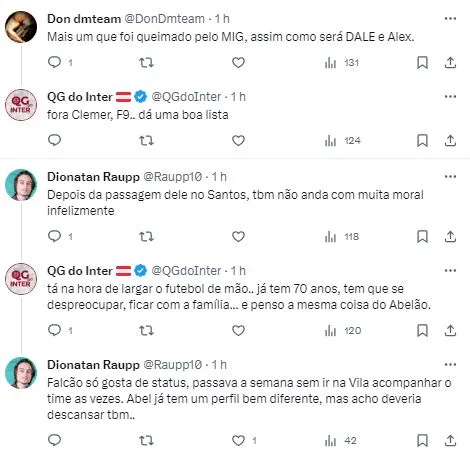Falcão iniciou a resposta alfinetando arealidade que perdura por duas décadas no Beira-Rio: “Não deixariam, a confraria que está lá não iria deixar. Têm uma confraria que está lá há 20 anos.”, disparou o ídolo, para na sequência explicar o que pensa sobre assumir a presidência.