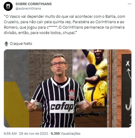 Com a nova derrota, para um adversário direto na briga contra o rebaixamento, o Vasco pode até mesmo acabar a 36ª rodada dentro do Z-4. Vai depender do jogo do Bahia, que enfrenta o São Paulo em Salvador. Segundo Ramón Díaz, sua equipe se desesperou contra o Corinthians.