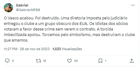 Torcida do Vasco entra em desespero
