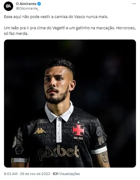 “Que a torcida não cometa o erro de atirar objetos no gramado. Se perdermos o mando de campo, teremos que jogar em outro estádio. Vamos dar a vida para podermos nos salvar, que nossos torcedores fiquem tranquilos”, pediu o treinador do Vasco.