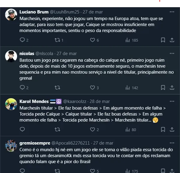 “São dois treinadores muito inteligentes, certamente farão uma grande final. Eles merecem estar sempre em decisões como essa, porque são personagens que contribuem muito para o futebol”, disse o arqueiro em entrevista ao Correio do Povo.