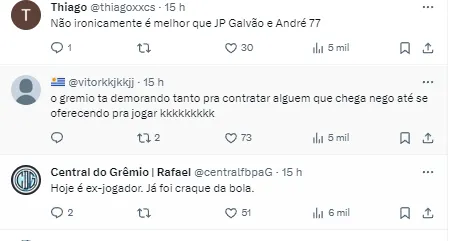 Os dois relataram que é de interesse do atacante, que deixou o Independiente del Valle, do Equador, recentemente quer voltar ao futebol brasileiro. Com isso, ele teria se oferecido para defender o Grêmio.