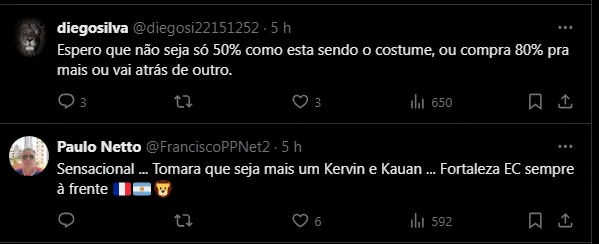 “Tem muito clube de Série A que vai quebrar em breve. Estão agindo de forma muito irresponsável no mercado. Pagando valores de compra, salários, luva e comissões e não vou fazer isso com o Fortaleza”, disse o CEO da SAF do Leão.