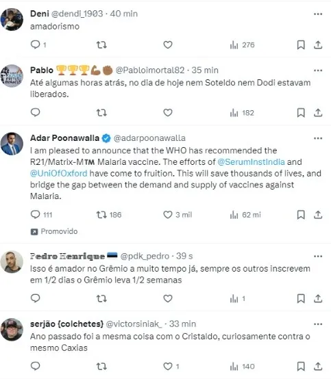 “O processo pode demorar por se tratar de um estrangeiro que nunca atuou no Brasil. Tudo que dependia do Grêmio já foi feito para a regularização no BID. Tricolor Gaúcho aguarda resolução dos documentos referentes às outras partes“, completou Kaliel.