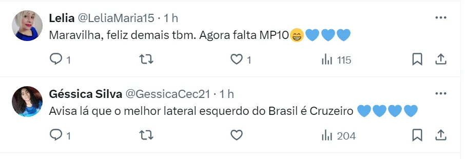 “Feliz com esse novo projeto do Cruzeiro, feliz em continuar aqui. Era uma coisa, que sempre esteve na minha cabeça e no meu coração”, pontuou o atleta. Ele agora quer ser campeão pelo clube.