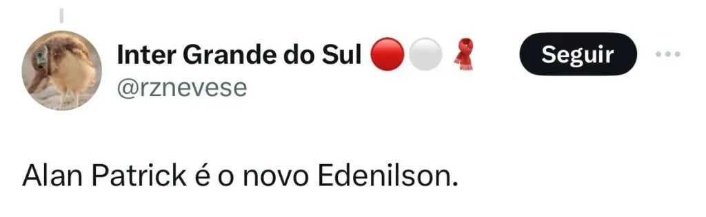 “O Internacional tem muitos nomes, mas o time ainda não decolou. Alguns jogadores aparecem, mas na ‘Hora H’ do jogo decisivo, somem. Exemplo: Alan Patrick. Vai depender do Alan Patrick? Como que vai ser isso? Tem várias dúvidas”, disparou o comentarista.