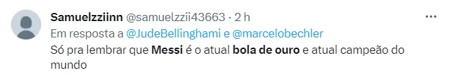 “Não tenho medo dela escapar de mim. Messi merece. Na noite do dia 18 (de dezembro, final da Copa), soube que ele havia vencido a Copa do Mundo e a Bola de Ouro. Tive uma ótima temporada, como Haaland, mas quando você vence a Copa do Mundo faz a diferença”, disse.
