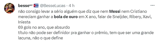 Messi emrecia ter ganho a Bola de Ouro da última temporada?