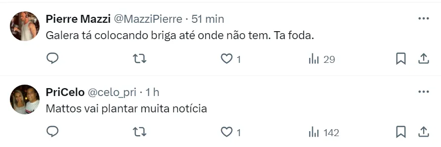 “Nem eu sabia dessa! Olha isso @MedelPitbull“, escreveu Erick Marcus no X. “Nem eu irmão! Que loucura! Kkkkkkkkk”, respondeu o zagueiro e volante chileno, que discute uma renovação contratual com o Gigante da Colina.