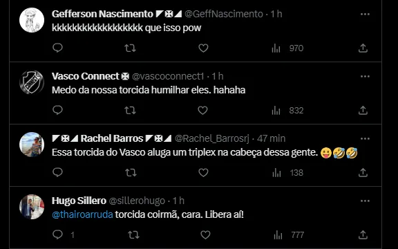 “O Vasco tentou, mas o Botafogo não autorizou a entrada de torcedores para a organização do mosaico para o próximo sábado, no Nilton Santos, contra o Fluminense. Desta forma, os organizadores já estão preparando uma grande festa para o jogo contra o Coritiba, em São Januário”, destaca o jornalista na informação.