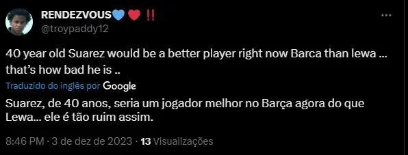 “Suárez sem pernas está marcando isso e eu tenho que assistir Lewa”, “Os torcedores do Grêmio deram a Suárez a melhor despedida de todas. Melhor que Barcelona, Atlético, Nacional”, disseram os torcedores.