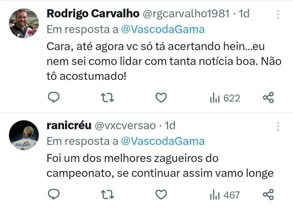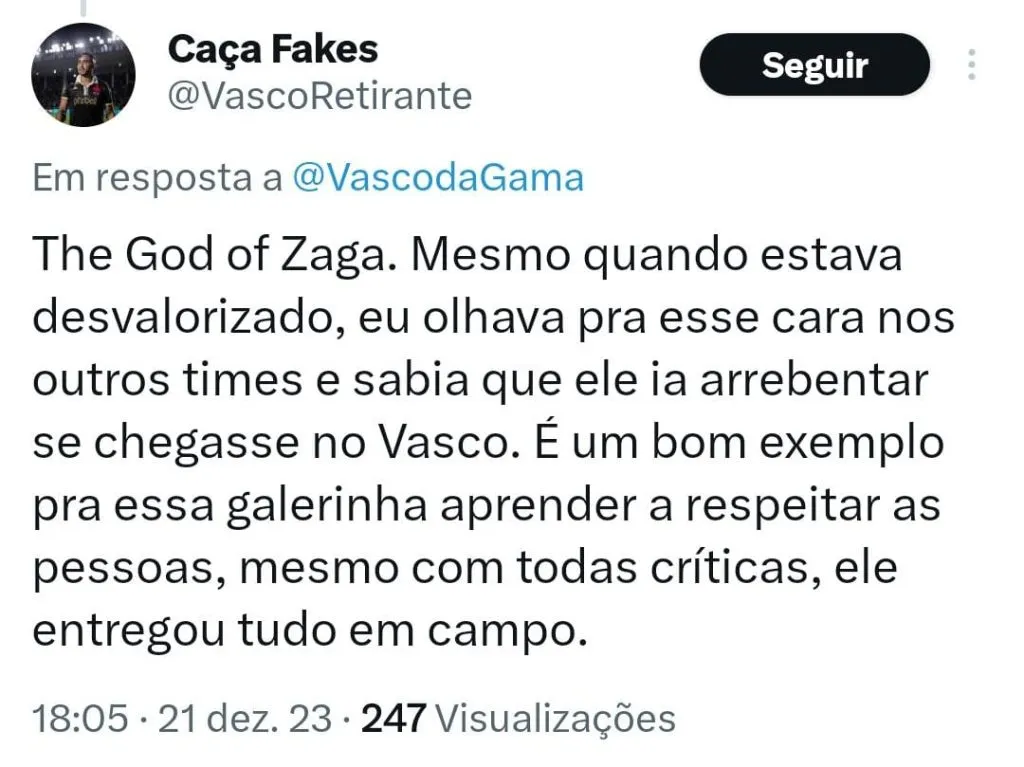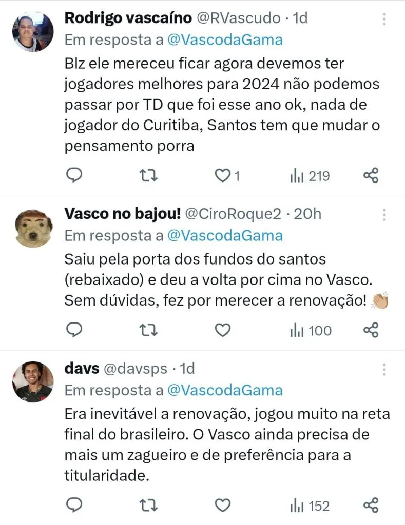 A torcida do Vasco comemorou a o anúncio do jogador e destacou o papel importante desenvolvido durante a campanha do Gigante da Colina no Brasileirão.