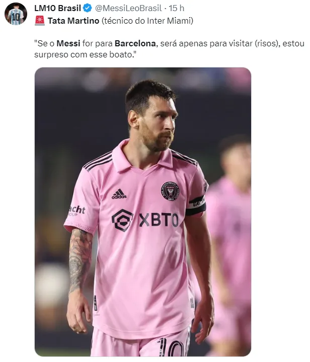 As especulações sobre um possível empréstimo de Messi para o Clube catalão tomaram força nos últimos dias, e o burburinho chegou até Gerardo “Tata” Martino, o técnico do Inter Miami. Com bom humor, o treinador falou sobre a “possível ida” do campeão mundial pela Argentina ao Barcelona, mas praticamente descartou a possibilidade do reencontro neste momento.