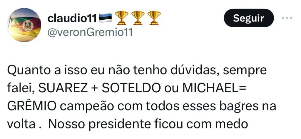 O que os torcedores do Grêmio pensam sobre Michael