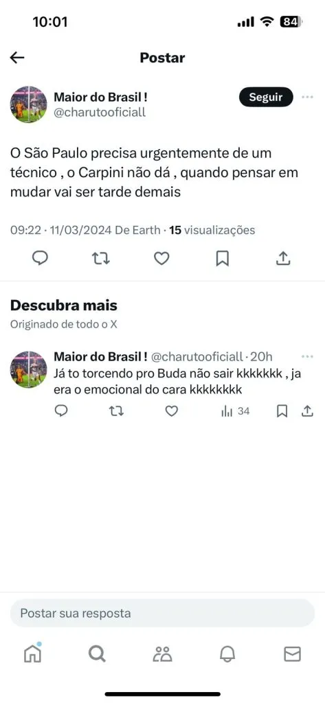 “Todos os times têm Técnico, só o São Paulo tem um medíocre Carpini!!Esse incauto é, no máximo, técnico de terceira divisão! Carpini é, E SEMPRE SERÁ, técnico de time PEQUENO”, esbravejou um internauta nas redes sociais.