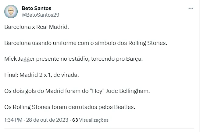 A maldição parecia ser quebrada quando Gündogan abriu o placar aos 6’ do primeiro tempo. O jogo parecia estar bem encaminhado, porém, Bellingham deu um banho de água fria na torcida do Barça.