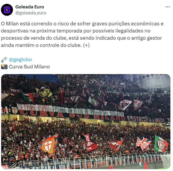 Vale destacar que, atualmente, o clube é o segundo colocado na Serie A, o Campeonato Italiano. Os Rossoneri estão atrás apenas da Inter, líder da competição. Em caso de sanção, pode perder a chance de disputar a Champions League.