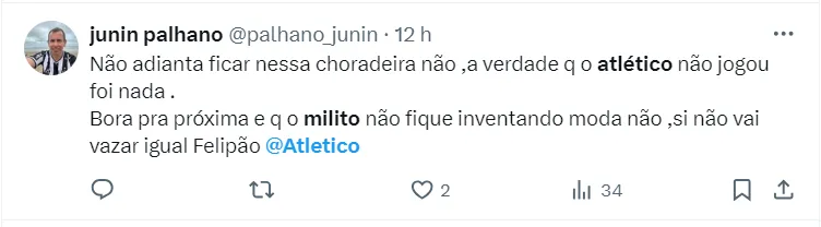 Durante coletiva de imprensa, o técnico Gabriel Milito não escondeu a insatisfação com o resultado conquistado. Entretanto, apontou que para o que o elenco apresentou em campo foi injusto. “A única pena é o resultado, porque considero que foi injusto. Hoje, merecemos a vitória”.