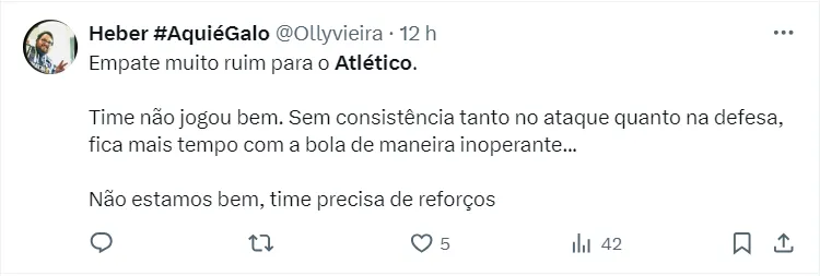 Em contraponto, o Galo teve a chegada de Bernand, que vem sendo bastante comemorada pela torcida. Hulk, inclusive, revelou que o elenco está ansioso com essa chegada, que vai ajudar a equipe na temporada.