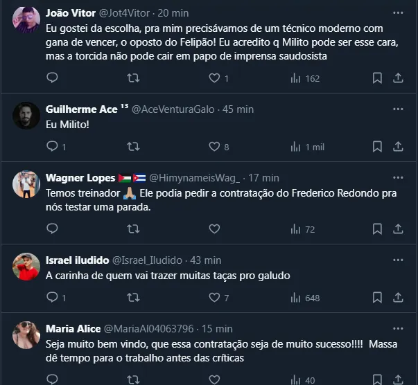 Com isso, os últimos dias foram agitados na Cidade do Galo e o argentino Gabriel Milito foi confirmado como novo treinador da equipe. O anúncio oficial veio neste domingo (24), juntamente com os quatro profissionais de sua comissão.