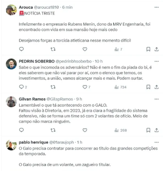 “Mesmo milionário, o Galo virou a segunda força de Minas! Vergonhoso. (…) Fazia MUITO TEMPO que não víamos isso. Mas hoje é fato: o time do Cruzeiro é a primeira força do futebol mineiro”, disse Milton Neves
