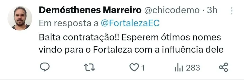 “É um profissional muito qualificado pra ocupar a função de Executivo do Fortaleza pra nos ajudar nos objetivos nos próximos três anos, e também no processo de internacionalização da nossa marca”, declarou o CEO do clube.