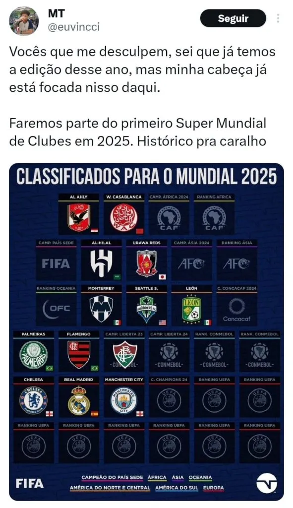O Fluminense conquistou pela primeira vez uma vaga no Mundial de Clubes ao derrotar o Boca Juniors no Maracanã, pela Libertadores. O tricolor carioca se junta a Flamengo e Palmeiras que garantiram suas vagas devido aos títulos da Glória Eterna conquistados entre 2021 e 2024.